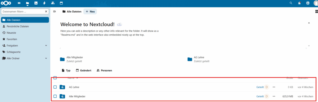Jetzt haben Sie Zugriff auf alle für Sie freigegebenen Ordner (z.B. alle Mitglieder, Ihrer Arbeitsgruppen).